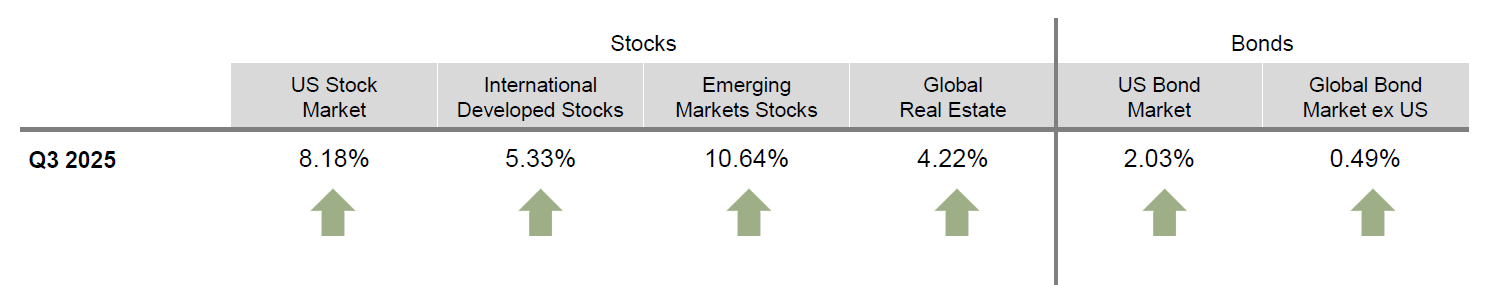 The US equity market posted positive returns for the quarter and outperformed non-US developed markets but underperformed emerging markets.
